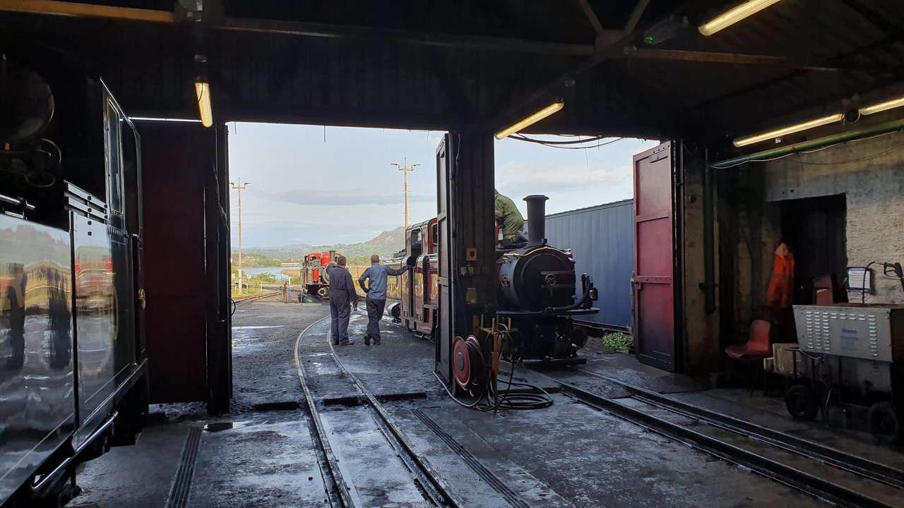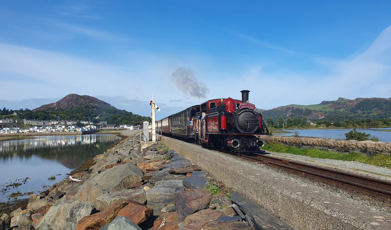 Diese Bahn wurde ursprünglich zum Schiefertransport erbaut. Spurweite 597 mm. Es existieren zwei sehr sehenswerte Strecken. Den ersten Tag nutzen wir zur Mitfahrt im "Highland Express". Die Lok der Bauart Fairlie; der erste Hingucker.
