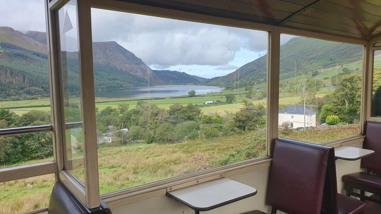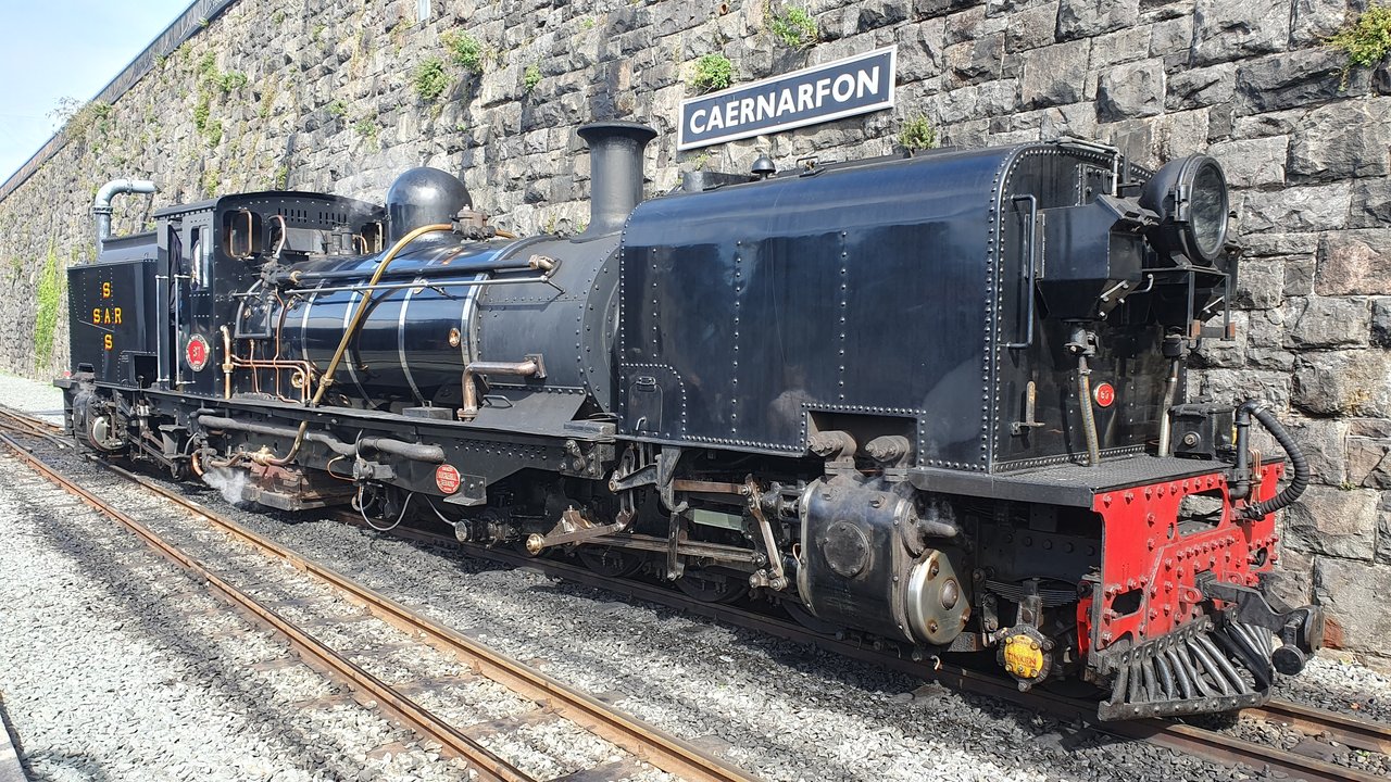Dritter Tag, zweite Mitfahrt. Die Strecke nach Caernarfon weist starke Steigungen auf. Deshalb sind den Zügen die mächtigen Garratts vorgespannt.